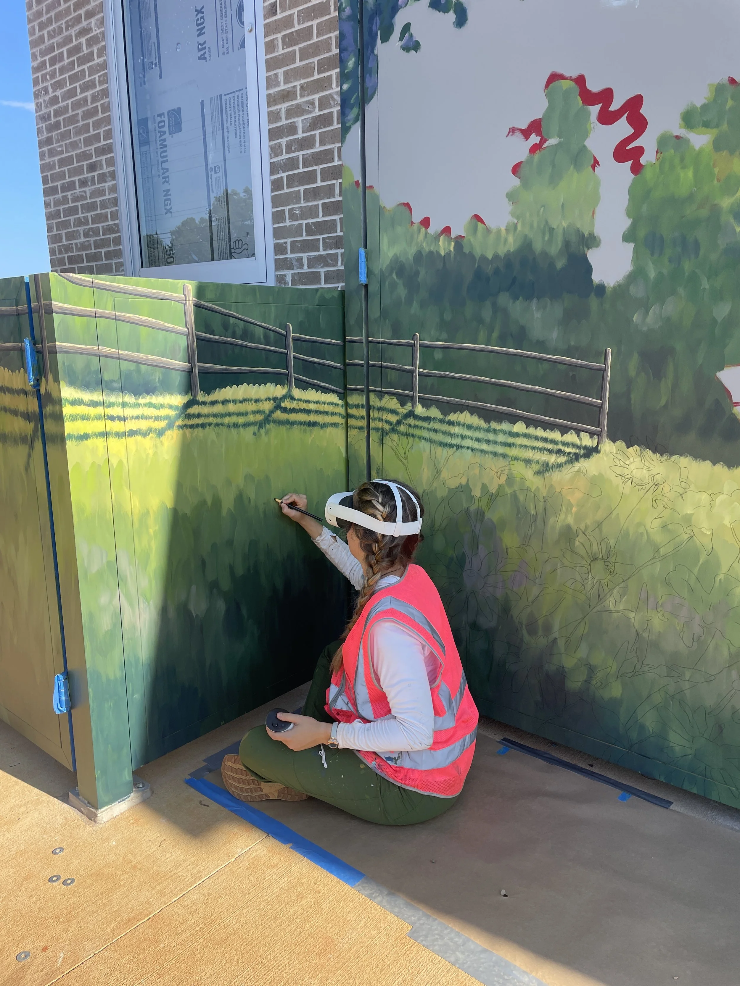 The mural was painted during active construction, it was the first time we had to paint while wearing proper protection equipment & using scaffolding!